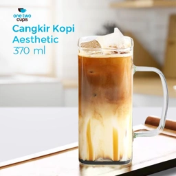 One Two Cups Cangkir Kopi Kaca Tahan Panas - Desain Kotak Aesthetic, Kapasitas 370ml IH