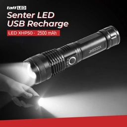 TaffLED Senter LED USB Recharge XHP50 - Pencahayaan Super Terang, Praktis dan Tahan Lama