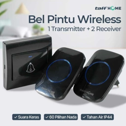 TaffHOME Bel Pintu Wireless Waterproof 1 Transmitter 2 Receiver - H10, Suara Keras & Jarak 300M, 60 Nada, Desain Elegan