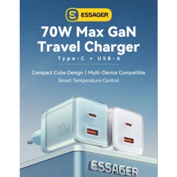 - 1 X ESSAGER Kepala Charger Dual Port Fast Charging GaN PD QC 70W - ES-CD42