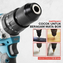 - 1 x Taffware Bor Listrik Cordless Brushless 1350RPM 21V - LB176