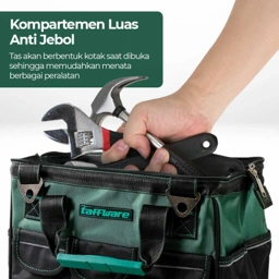 Ribet mencari alat perkakas? Selalu khawatir alat basah saat hujan? Kesulitan menemukan tas di tempat gelap? Dengan Tas Perkakas Taffware, Anda bisa mengatasi semua masalah itu dengan mudah.