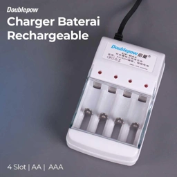 Doublepow Charger Baterai 4 Slot AA AAA Ni-MH Ni-CD with LED - DP-B02, Efisien dan Aman - Pengisian Serentak, Keamanan Terjamin