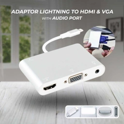Adaptor Konverter Video Lightning to HDMI VGA with Audio Port - Solusi Tampilan Jernih ke Layar Lebih Besar, Stylish dan Praktis
