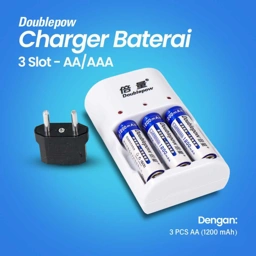 Doublepow Charger Baterai 3 Slot AA AAA with 3 Baterai AA 1200 mAh - Efficient Charging, Portable Design