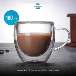 - 1 x One Two Cups Cangkir Kopi Kaca Tahan Panas Double Wall Cup 160ml