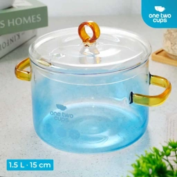 - 1 x One Two Cups Panci Kaca Glass Cooking Pot Tahan Panas Api 15cm - KC008