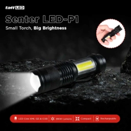 TaffLED Senter LED Dual LED & COB 3800 Lumens - Cahaya Super Terang, Proteksi Lengkap. Ergonomis
