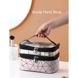 QEHIIE Tas Kosmetik Make Up Travel Wanita Vinyl - Kapasitas Luas, Handle Praktis - Anti Air