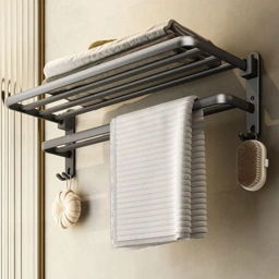 LISM Rak Dinding Kamar Mandi Gantungan Handuk Double Layer Foldable - Rapi dan Efisien, Aluminium Kokoh