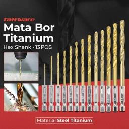 - 1 Set Taffware Mata Bor Power Drill Steel Titanium Hex Shank 13 PCS - SV-VDB13