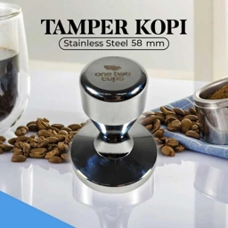 - 1 x One Two Cups Tamper Kopi Espresso Flat Base Stainless Steel - FEN58