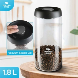 - 1 x One Two Cups Toples Kaca Penyimpanan Biji Kopi Vacuum Sealed Lid - SE41