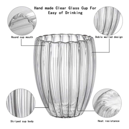 WAAOPO Gelas Kaca Aesthetic Tahan Panas Double Wall - Minuman Hangat Tetap Panas, Dingin Tetap Dingin, Stripe Vintage