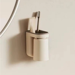 Kamar mandi berantakan karena sikat gigi dan gelas terpisah, mengganggu estetika. Air sisa di gelas menyebabkan kerak kapur dan kurang higienis.