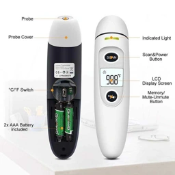 - Fungsi 2-in-1 Ukur Suhu Tubuh dan Objek: Praktis untuk penggunaan keluarga, medis, maupun keperluan rumah tangga sehari-hari.