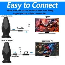 - 1 x ANVU Antena TV Digital Indoor DVB-T2 HD 4K Amplifier Male Plug 25dB - AN488