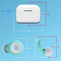 - Dimensi: Earplug 23 x 16 x 21 mm, Case 55 x 20 x 40 mm