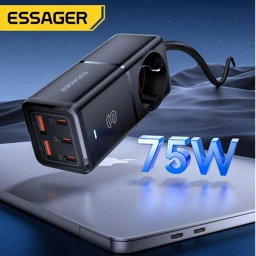 - 1 x ESSAGER Charger Power Strip All-in-One Adaptor Fast Charging PD QC 75W - WL-Gan75-EU