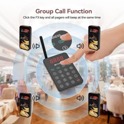 RETEKESS Wireless Calling System 10 Pager - TD177, Efisiensi Pelayanan Bisnis dengan Alarm Jelas, Transmitter Digital Intuitif, Pairing 10 Pager, Sinyal Lancar Jarak Jauh, Group 1 Klik, Panggilan Ulang Otomatis, Countdown dan Alarm Keamanan, Baterai Tahan Lama, Model Pemasangan Dinding, Berkualitas dan Tahan Air