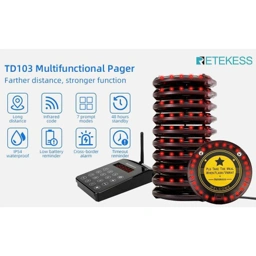 RETEKESS Wireless Calling System Restaurant Mesin Antrian 10 Pager - TD103, Efisien dan Mudah Digunakan, Desain Modern