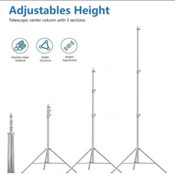 Dapatkan pencahayaan stabil selama proses videografi dengan tripod light stand ini. Kakinya yang stabil menjaga perangkat agar tidak bergoyang atau terjatuh, memberikan ketenangan pikiran selama pengambilan gambar. Atur ketinggian hingga 2.55M untuk sudut yang pas tanpa kendala.