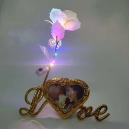- Dimensi: Tinggi Total: 24.5 cm, Diameter Bunga: Sekitar 8 cm, Frame Foto: 19 x 8.5 cm