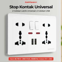 Taffware Stop Kontak Universal 2 Slot 2 USB On/Off Switch - Praktis dan Efisien, Cocok untuk Kebutuhan Beragam