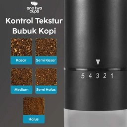 One Two Cups Alat Penggiling Kopi Manual Adjustable - Halus Gilingan, Tekstur Bubuk Kopi Variatif, Kokoh dan Tahan Karat