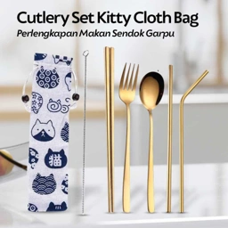 Kitty Cutlery Set Alat Makan - Ideal untuk Perjalanan, Kebersihan, dan Kesehatan, Stylish dan Fungsional