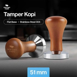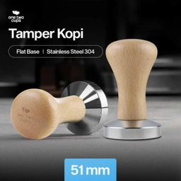 One Two Cups Tamper Kopi Espresso Flat Base Stainless Steel 304 51mm - Tekan Kopi Presisi, Rasa Konsisten - Handle Kayu Ergonomis